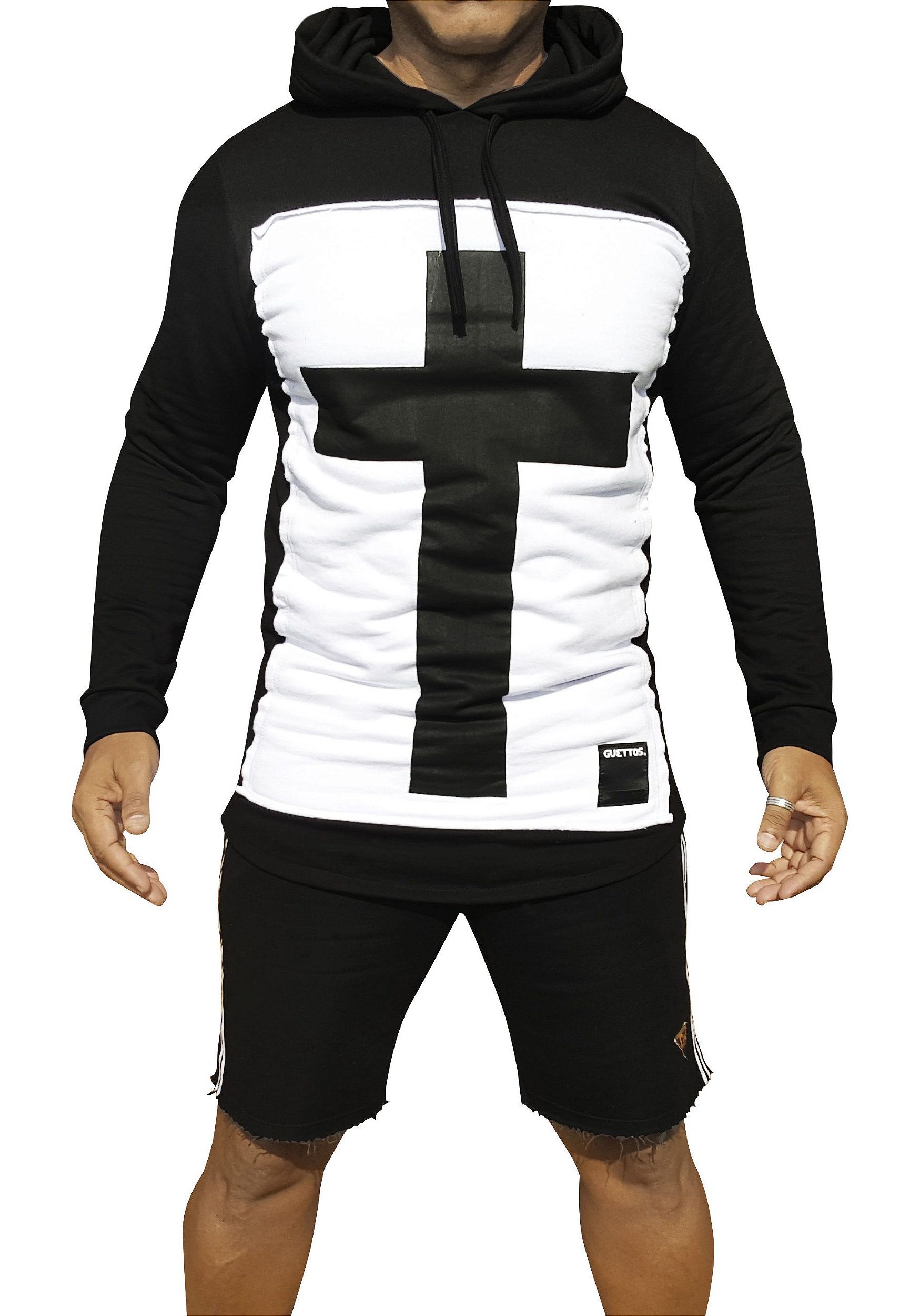 CASACO DE MOLETOM COM CAPUZ CRUCIFIXO